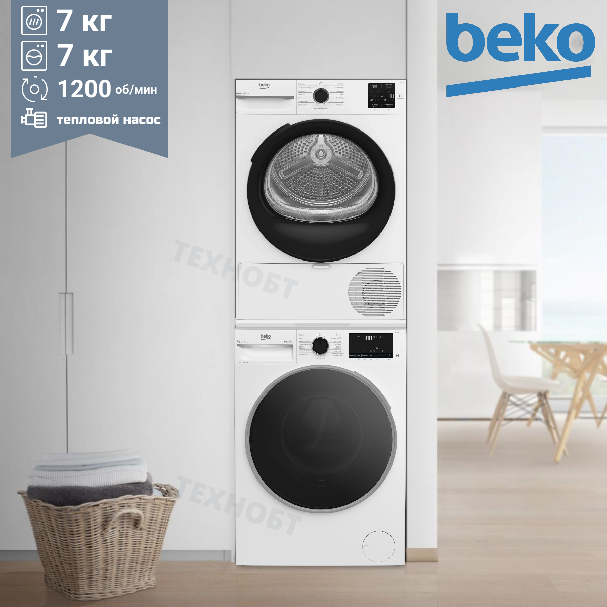 - Комплект стиральная и сушильная машина Beko RSPE 78612W + BM3T37220